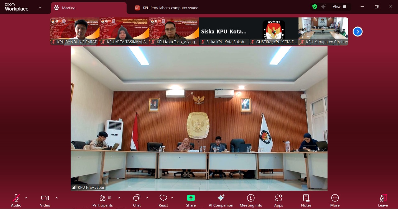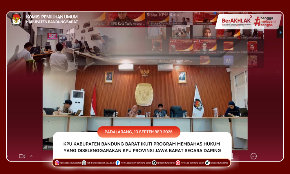 KAB BANDUNG BARAT - Komisi Pemilihan Umum (KPU) Kabupaten Bandung Barat mengikuti kegiatan Program Membahas Hukum (MH) Jaringan Dokumentasi dan Informasi Hukum (JDIH) KPU Provinsi Jawa Barat Seri #2 yang dilaksanakan secara daring melalui Zoom Meeting pada Rabu (10/09/2025).