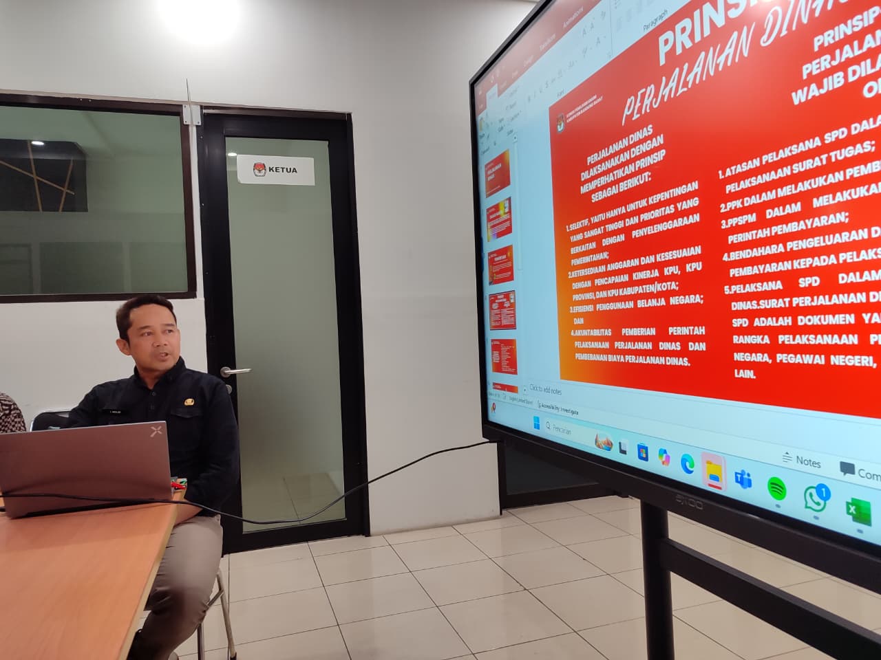 Holid menjelaskan dasar hukum perjalanan dinas sebagaimana diatur dalam Peraturan Menteri Keuangan Nomor 119 Tahun 2023 Tentang Perubahan Atas Peraturan Menteri Keuangan Nomor 113/Pmk.05/2012 Tentang Perjalanan Dinas Dalam Negeri Bagi Pejabat Negara, Pegawai Negeri, Dan Pegawai Tidak Tetap, serta Keputusan Komisi Pemilihan Umum Nomor 409 Tahun 2022 Tentang Pedoman Teknis Pelaksanaan Perjalanan Dinas Dalam Negeri Di Lingkungan Komisi Pemilihan Umum, Komisi Pemilihan Umum Provinsi Dan Komisi Pemilihan Umum Kabupaten/Kota.