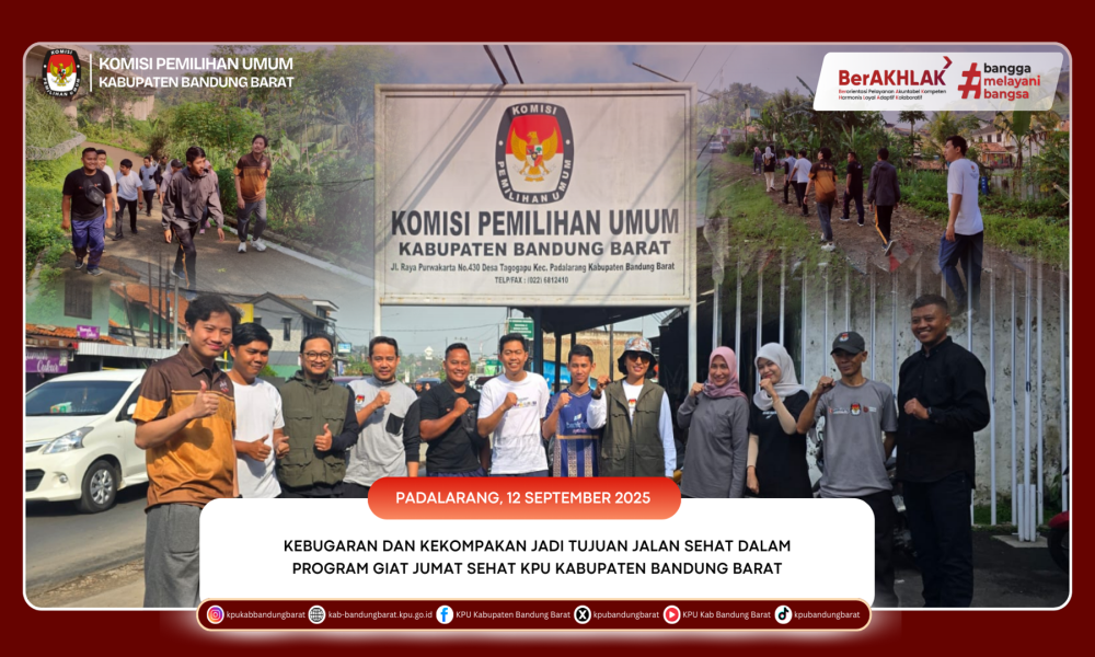 Melalui kegiatan Giat Jumat Sehat seperti jalan sehat ini, KPU Kabupaten Bandung Barat berharap dapat memberikan contoh positif bahwa kesehatan dan kekompakan adalah kunci dalam mendukung tugas besar penyelenggaraan pemilu yang berkualitas.(insan)