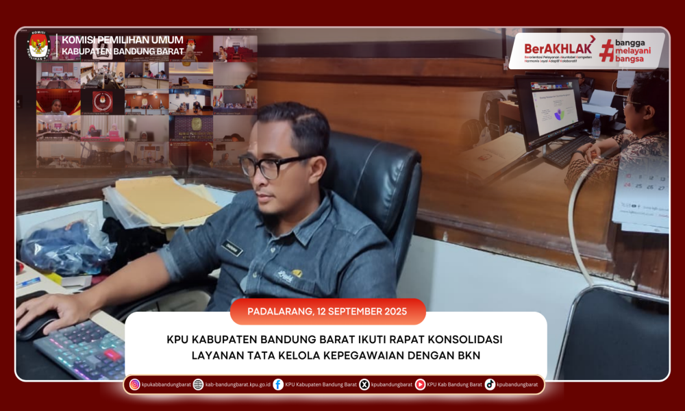KPU BANDUNG BARAT - Komisi Pemilihan Umum (KPU) Kabupaten Bandung Barat melalui Kasubag Partisipasi Masyarakat dan Sumber Daya Manusia (Parmas dan SDM), Chaeruman Setia Nugraha, bersama staf sub bagian terkait, mengikuti Rapat Konsolidasi Layanan Tata Kelola Kepegawaian dengan Badan Kepegawaian Negara (BKN) di lingkungan Sekretariat Jenderal KPU Tahun 2025, sesuai dengan Surat Undangan KPU RI Nomor 1256/TIK.03-Und/04/2025.
