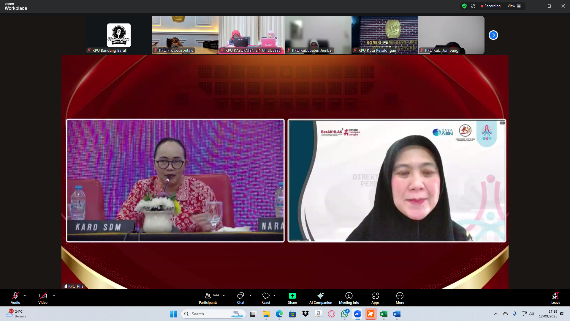 KPU Kabupaten Bandung Barat Ikuti Rapat Konsolidasi Layanan Tata Kelola Kepegawaian dengan BKN