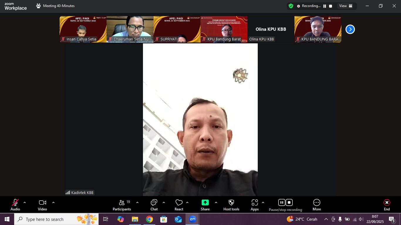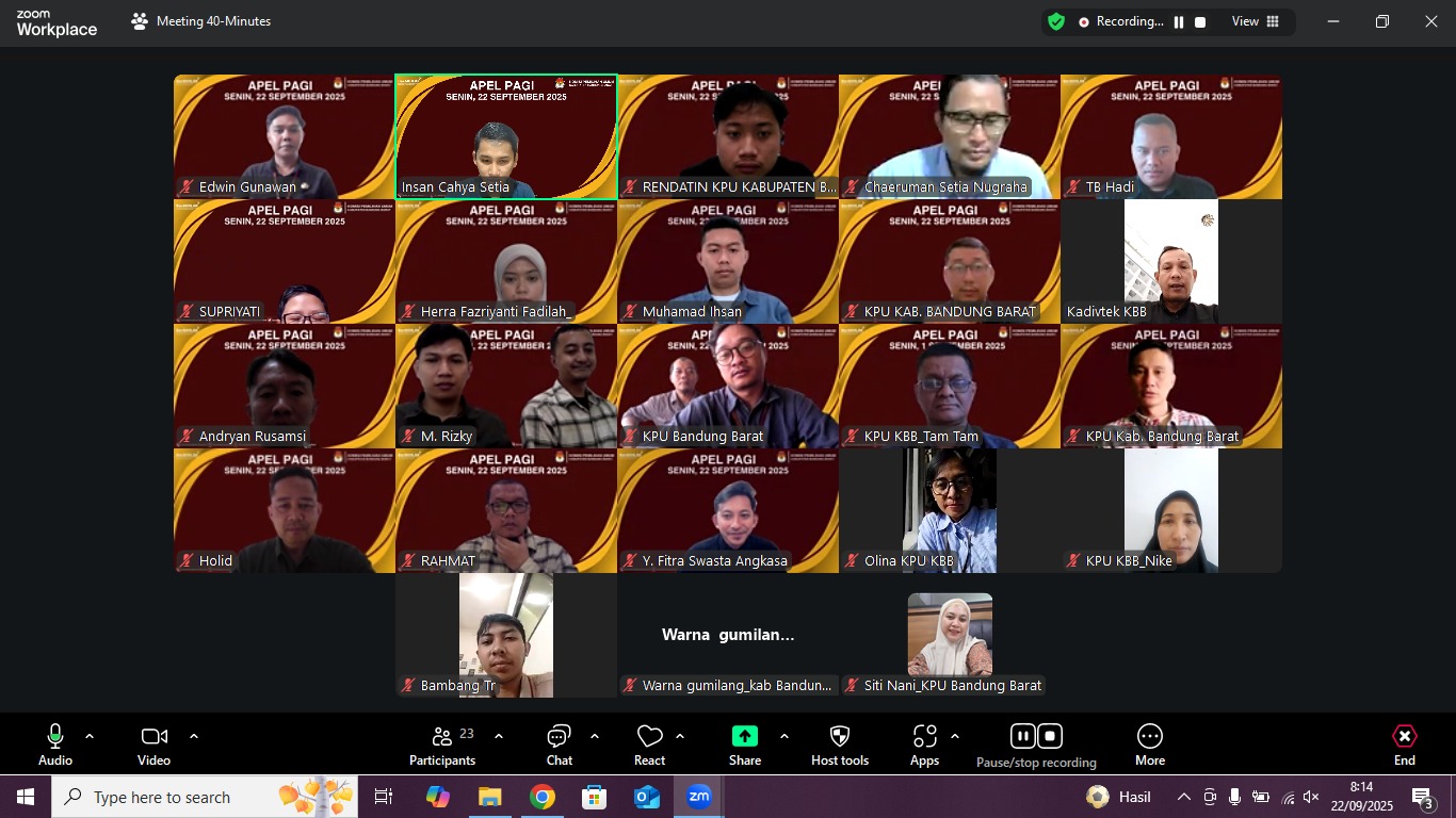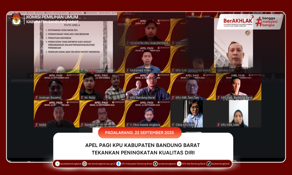 KPU BANDUNG BARAT - Komisi Pemilihan Umum (KPU) Kabupaten Bandung Barat kembali melaksanakan apel pagi rutin pada Senin (15/9/2025). Kegiatan ini diselenggarakan secara daring melalui aplikasi Zoom dan diikuti oleh seluruh jajaran pegawai, termasuk Sekretaris KPU Kabupaten Bandung Barat.