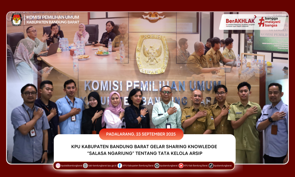 KPU BANDUNG BARAT - Komisi Pemilihan Umum (KPU) Kabupaten Bandung Barat menggelar kegiatan Sharing Knowledge “Salasa Ngariung” dengan tema Tata Kelola Arsip, pada Selasa (23/9/2025) di Ruang Rapat Bayu Baskoro. Acara ini dihadiri oleh Ketua KPU Kabupaten Bandung Barat, Ripqi Ahmad Sulaeman, Sekretaris KPU Kabupaten Bandung Barat, Olina Theresia Santi Dewi, para kepala subbagian, serta seluruh pegawai.