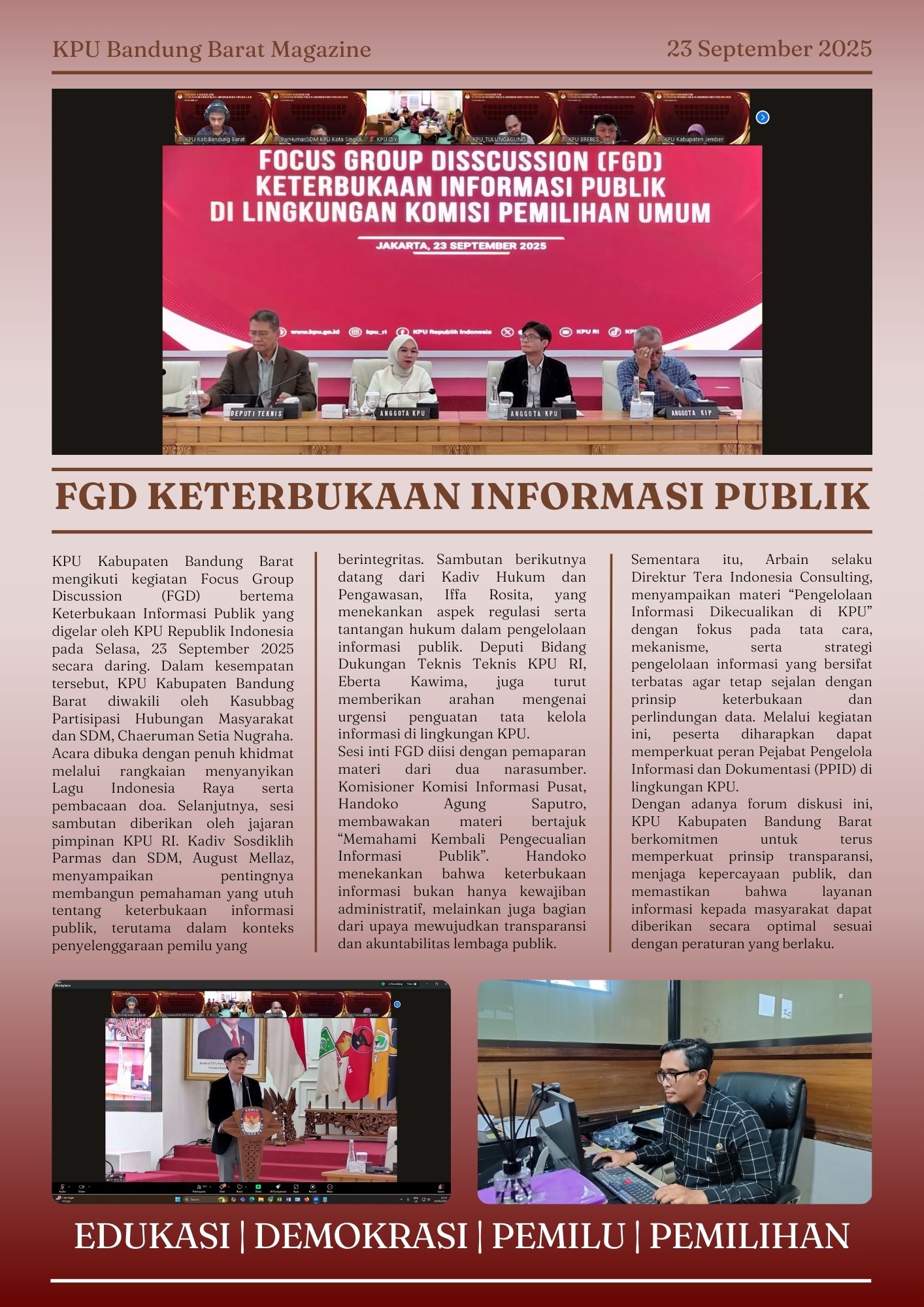 KPU Bandung Barat Ikuti FGD Keterbukaan Informasi Publik yang Digelar KPU RI