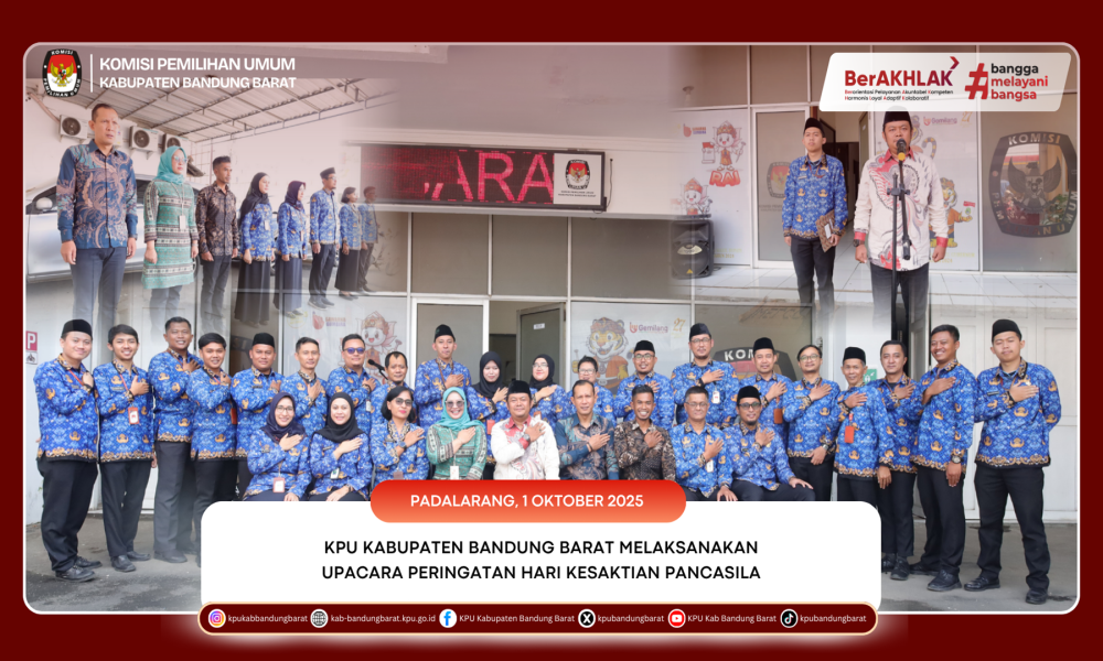KPU BANDUNG BARAT - Komisi Pemilihan Umum (KPU) Kabupaten Bandung Barat melaksanakan upacara peringatan Hari Kesaktian Pancasila pada Rabu, 1 Oktober 2025. Upacara ini digelar di halaman kantor KPU Kabupaten Bandung Barat dan diikuti oleh Ketua, Anggota, Sekretaris, serta seluruh jajaran pegawai KPU Kabupaten Bandung Barat.
