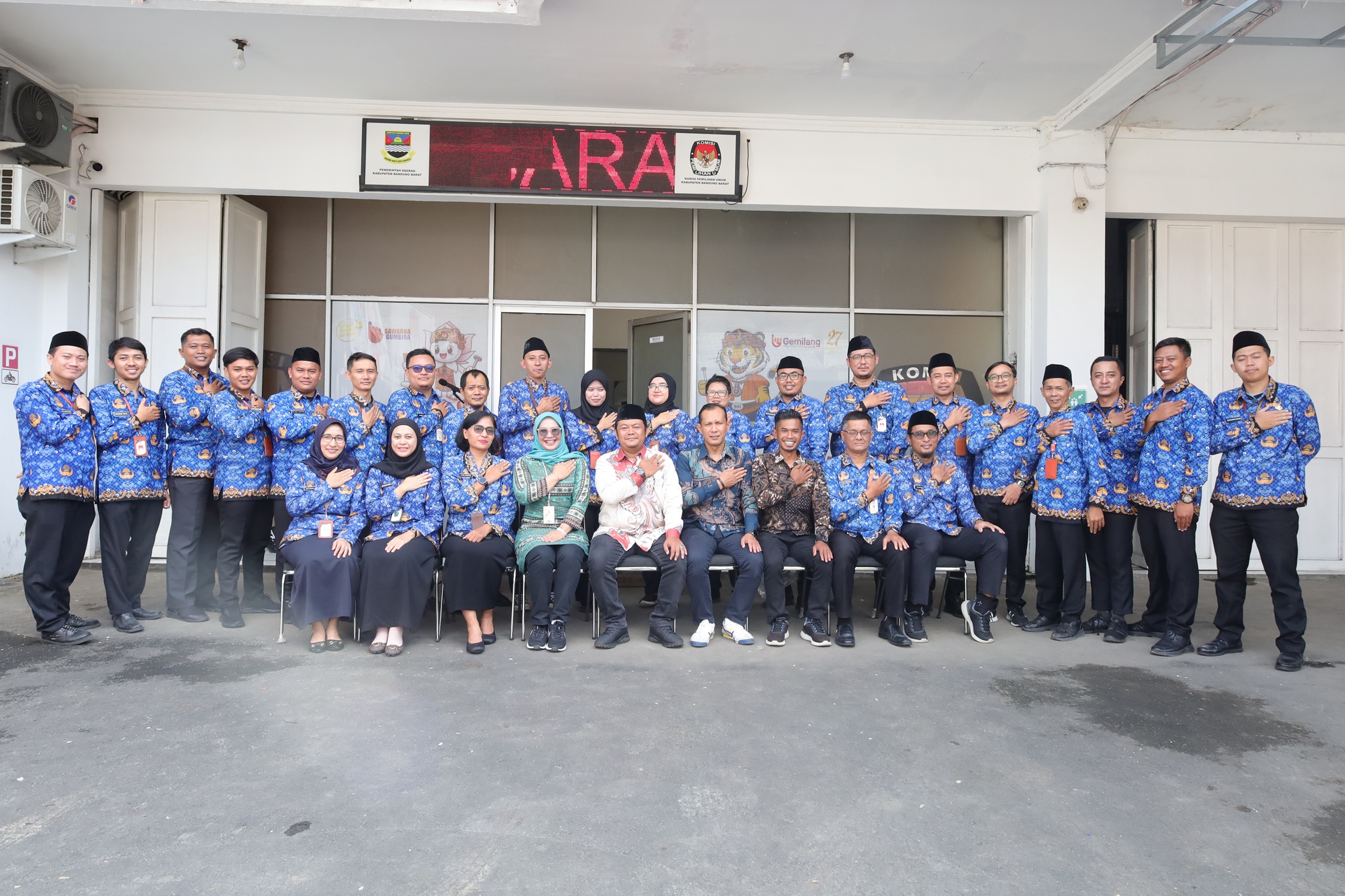 Setelah rangkaian upacara selesai, kegiatan dilanjutkan dengan sesi dokumentasi bersama Ketua, Anggota, Sekretaris, dan seluruh pegawai KPU Kabupaten Bandung Barat. Momen kebersamaan tersebut diabadikan sebagai bentuk komitmen lembaga untuk terus menginternalisasi nilai-nilai Pancasila dalam pelaksanaan tugas, khususnya menjelang tahapan pemilu yang semakin dekat.