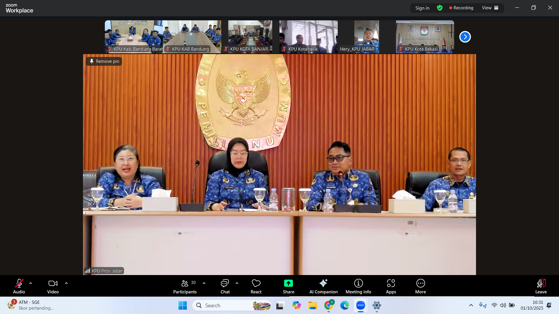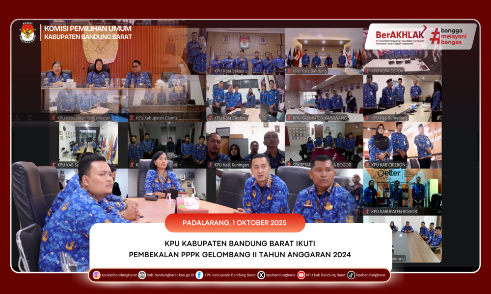 KPU BANDUNG BARAT - Komisi Pemilihan Umum (KPU) Kabupaten Bandung Barat mengikuti kegiatan Pembekalan Calon Pegawai Pemerintah dengan Perjanjian Kerja (PPPK) Gelombang II Tahun Anggaran 2024 yang diselenggarakan oleh KPU Provinsi Jawa Barat pada Rabu, 1 Oktober 2025. Kegiatan ini dilaksanakan secara daring dan diikuti oleh jajaran sekretariat KPU Kabupaten Bandung Barat bersama para calon PPPK.