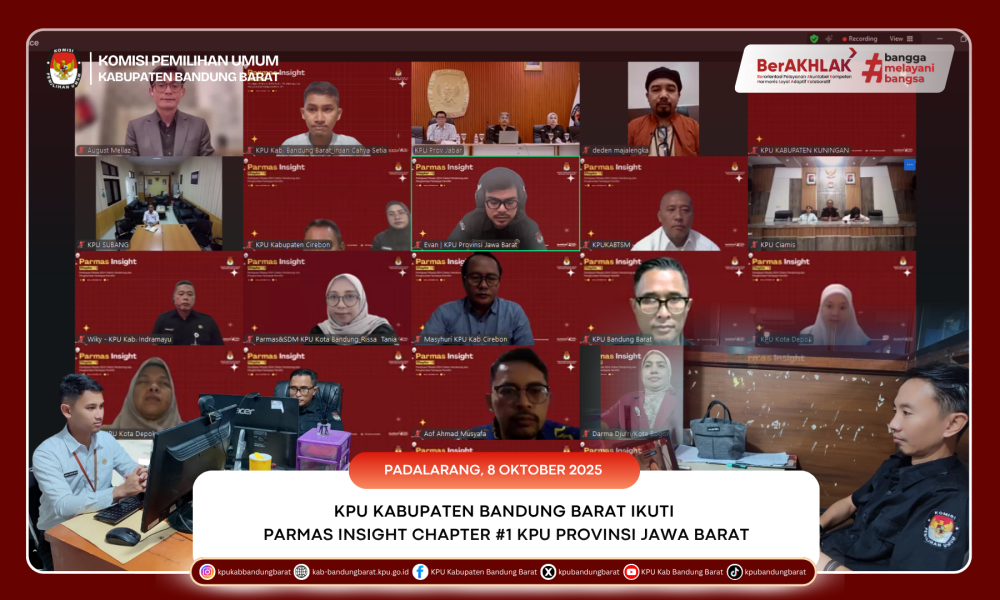 KPU BANDUNG BARAT - Komisi Pemilihan Umum (KPU) Kabupaten Bandung Barat mengikuti kegiatan Parmas Insight Chapter #1 yang diselenggarakan oleh KPU Provinsi Jawa Barat pada Rabu, 8 Oktober 2025 secara daring. Kegiatan ini dihadiri oleh Ketua Divisi Sosialisasi, Pendidikan Pemilih, Partisipasi Masyarakat dan SDM KPU Kabupaten Bandung Barat, Deni Firman Rosadi, Kasubbag Partisipasi, Hubungan Masyarakat dan SDM, Chaeruman Setia Nugraha, serta staf subbagian terkait.