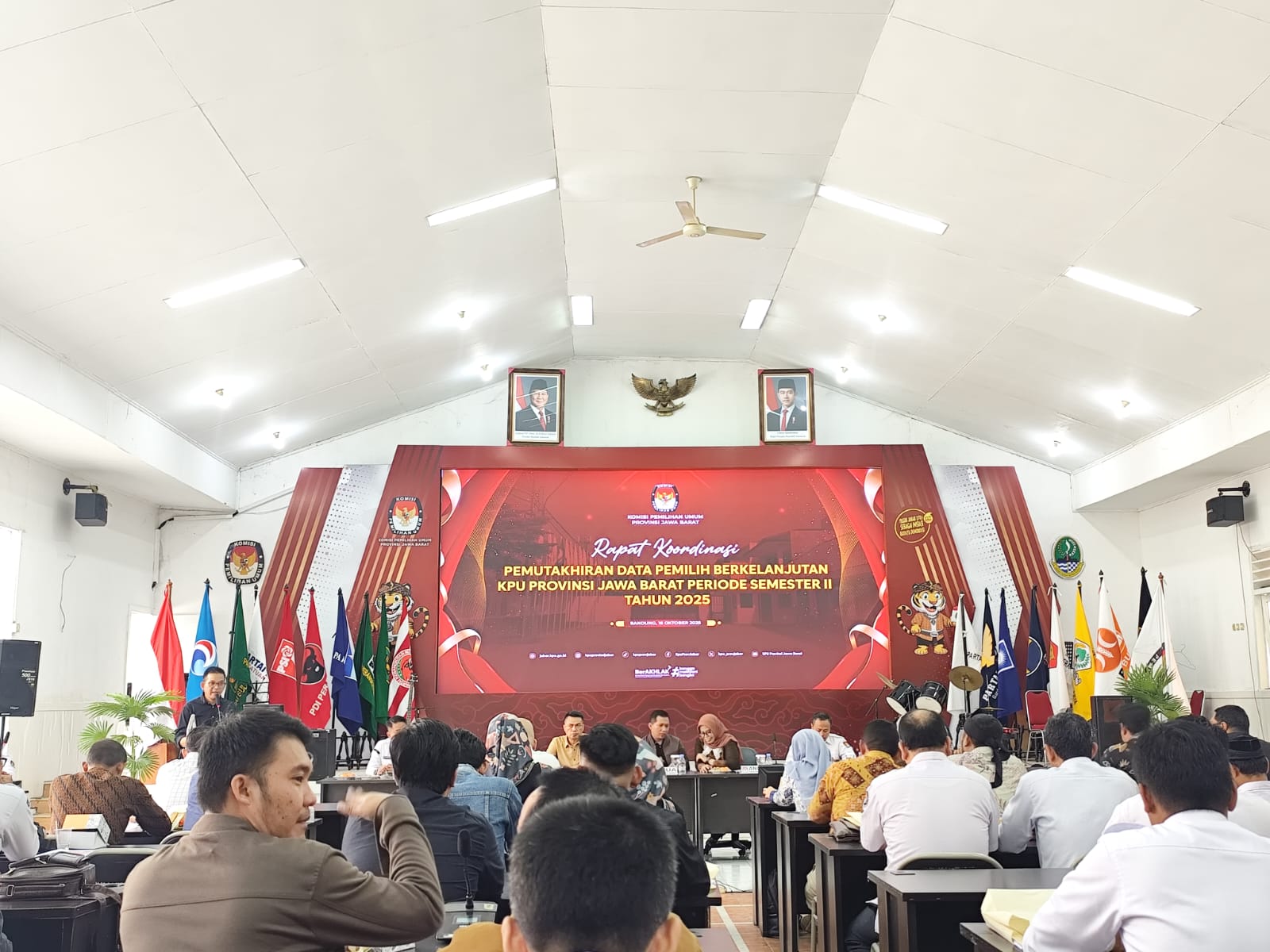 KPU BANDUNG BARAT - Komisi Pemilihan Umum (KPU) Kabupaten Bandung Barat menghadiri kegiatan Rapat Koordinasi Pemutakhiran Data Pemilih Berkelanjutan (PDPB) Semester II Tahun 2025 yang diselenggarakan oleh Badan Kesatuan Bangsa dan Politik (Bakesbangpol) Provinsi Jawa Barat bekerja sama dengan KPU Provinsi Jawa Barat, pada Kamis (16/10/2025) bertempat di Aula Setia Permana, Kantor KPU Provinsi Jawa Barat, Jalan Garut Nomor 11, Kota Bandung.