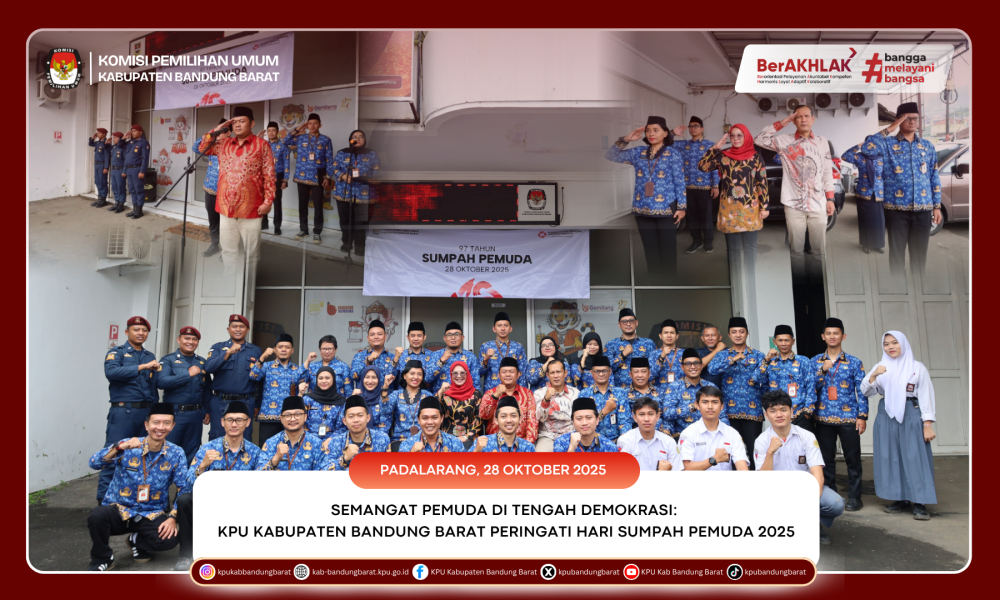 Melalui momentum peringatan Sumpah Pemuda ini, KPU Kabupaten Bandung Barat menegaskan komitmennya untuk terus berperan aktif dalam memperkuat nilai-nilai kebangsaan serta meningkatkan partisipasi generasi muda dalam demokrasi. Semangat Sumpah Pemuda diharapkan menjadi inspirasi bagi seluruh jajaran KPU untuk bekerja dengan integritas, profesionalisme, dan semangat kebersamaan demi mewujudkan Pemilu yang berdaulat dan inklusif.(insan)