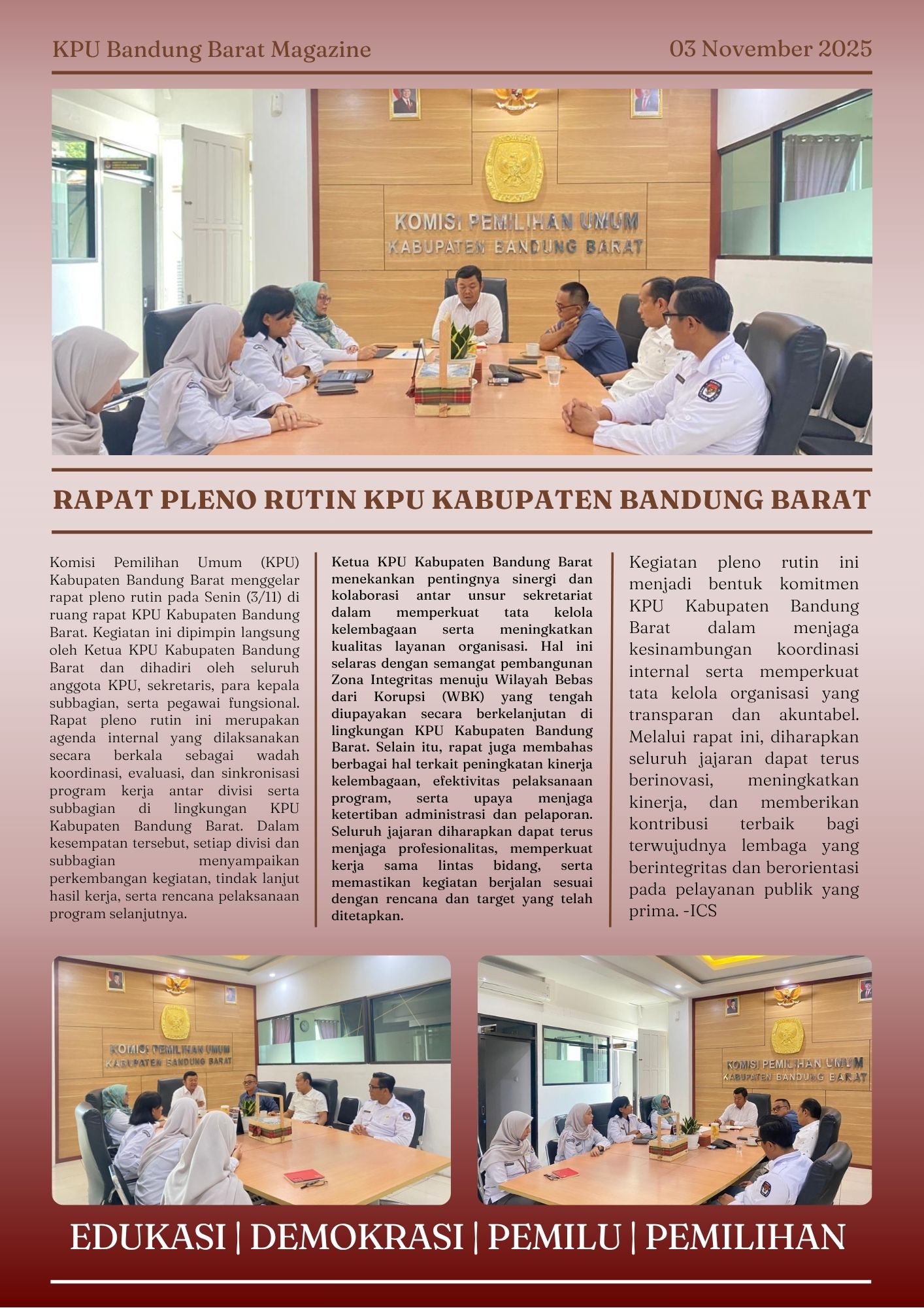 Rapat Pleno Rutin KPU Kabupaten Bandung Barat Bahas Evaluasi dan Penguatan Program Kerja