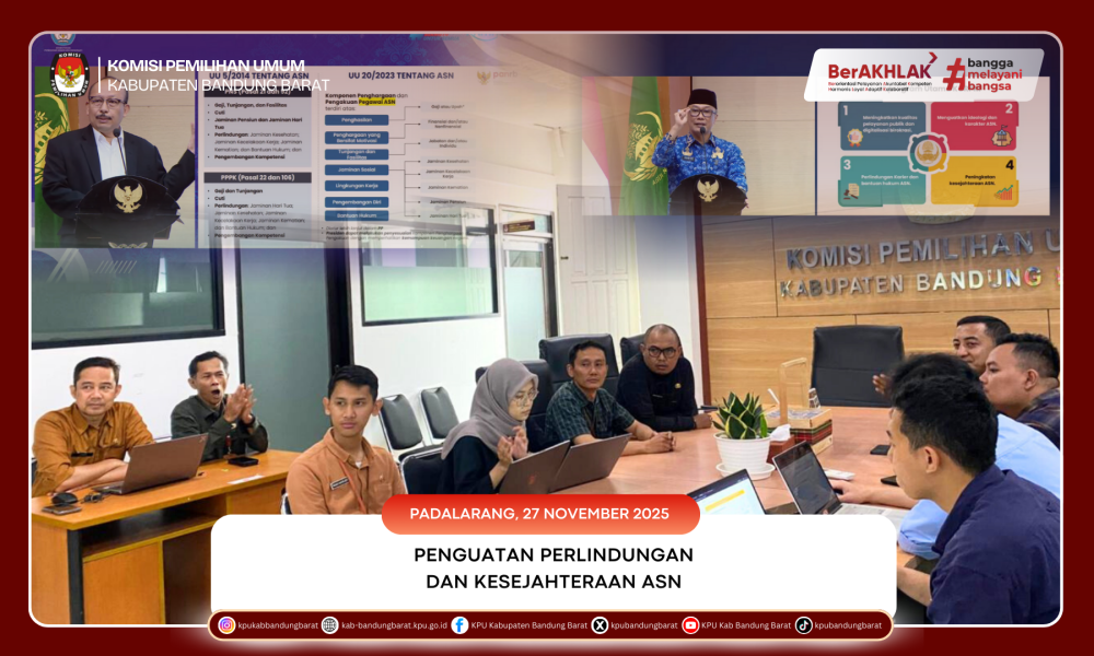 BANDUNG BARAT - Dalam rangka memperingati Hari Ulang Tahun ke-54 KORPRI, ASN KPU Kabupaten Bandung Barat mengikuti Seminar Nasional yang diselenggarakan secara daring pada Kamis, 27 November 2025. Dengan mengusung tema “Membangun Sistem Perlindungan dan Kesejahteraan ASN untuk Pelayanan Publik yang Berkelanjutan”, kegiatan ini bertujuan memperkuat sistem pendukung bagi Aparatur Sipil Negara (ASN) agar mampu menjalankan pelayanan publik secara profesional, berintegritas, dan berkesinambungan.