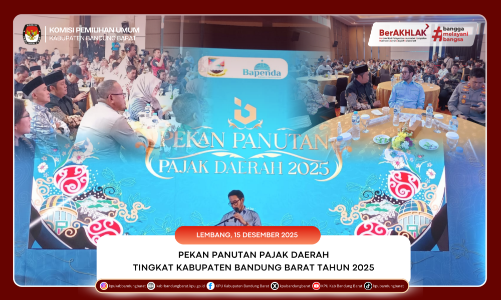 BANDUNG BARAT - Ketua Komisi Pemilihan Umum (KPU) Kabupaten Bandung Barat menghadiri kegiatan Pekan Panutan Pajak Daerah Tingkat Kabupaten Bandung Barat Tahun 2025 yang diselenggarakan oleh Pemerintah Daerah Kabupaten Bandung Barat. Kegiatan tersebut berlangsung pada Senin, 15 Desember 2025, bertempat di Novena Hotel Lembang, dan dihadiri oleh berbagai unsur pimpinan daerah serta perwakilan instansi.