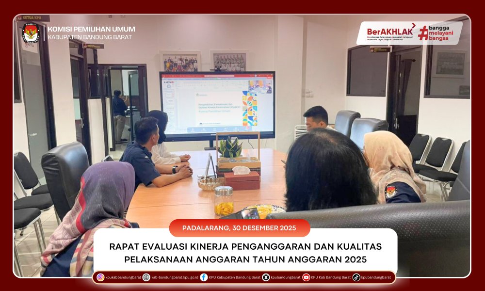KPU BANDUNG BARAT - Komisi Pemilihan Umum (KPU) Kabupaten Bandung Barat mengikuti rapat "Evaluasi Kinerja Penganggaran dan Kualitas Pelaksanaan Anggaran Tahun 2025" yang dilaksanakan secara daring oleh KPU RI pada Selasa, 30 Desember 2025.