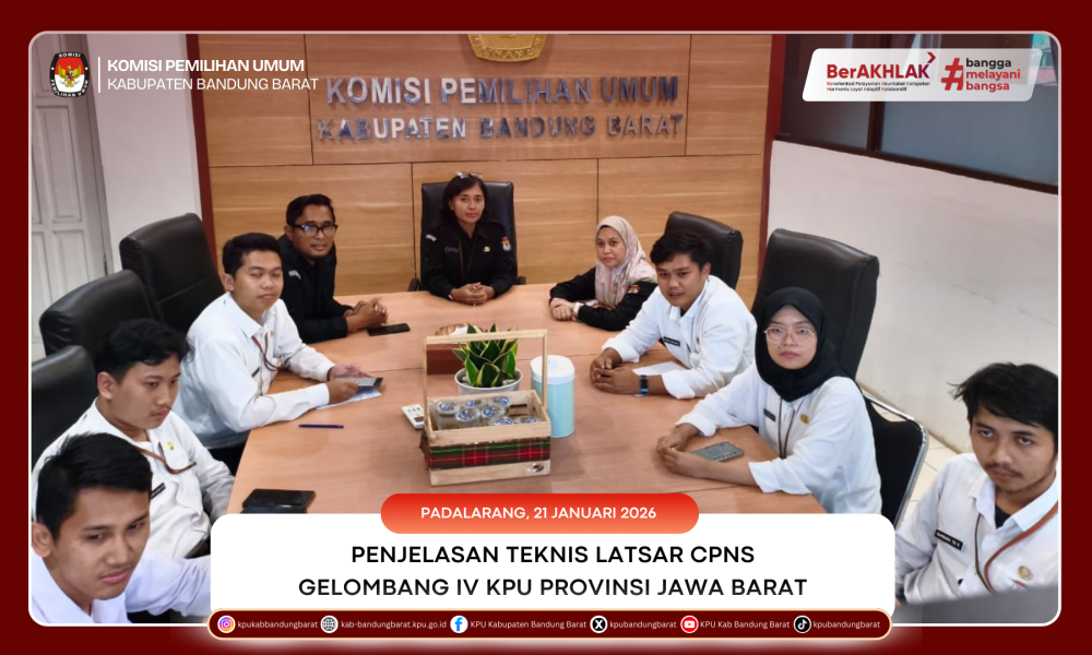 BANDUNG BARAT - Komisi Pemilihan Umum (KPU) Kabupaten Bandung Barat mengikuti kegiatan Penjelasan Teknis Latihan Dasar (Latsar) Calon Pegawai Negeri Sipil (CPNS) Gelombang IV yang diselenggarakan oleh KPU Provinsi Jawa Barat. Kegiatan ini dilaksanakan secara daring pada Rabu, 21 Januari 2026, sebagai bagian dari persiapan pelaksanaan Latsar CPNS yang akan segera dimulai.