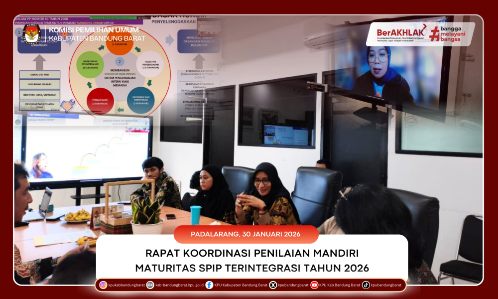 Komisi Pemilihan Umum (KPU) Kabupaten Bandung Barat mengikuti Rapat Koordinasi Pelaksanaan Penilaian Mandiri Maturitas Penyelenggaraan Sistem Pengendalian Intern Pemerintah (SPIP) Terintegrasi KPU Tahun 2026 yang diselenggarakan secara daring oleh KPU Republik Indonesia, Jumat (30/1/2026).