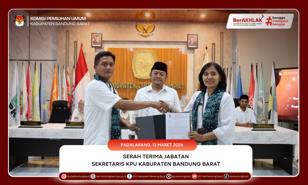 BANDUNG BARAT - Komisi Pemilihan Umum (KPU) Kabupaten Bandung Barat melaksanakan kegiatan Serah Terima Jabatan (Sertijab) Sekretaris pada Kamis, 12 Maret 2026, bertempat di Aula KPU Kabupaten Bandung Barat. Kegiatan ini menandai peralihan tugas dari Sekretaris KPU Kabupaten Bandung Barat sebelumnya, Olina Theresia Santi Dewi, S.E., M.M., kepada Sekretaris yang baru, Nugroho Nurman Sasono, S.Kom.