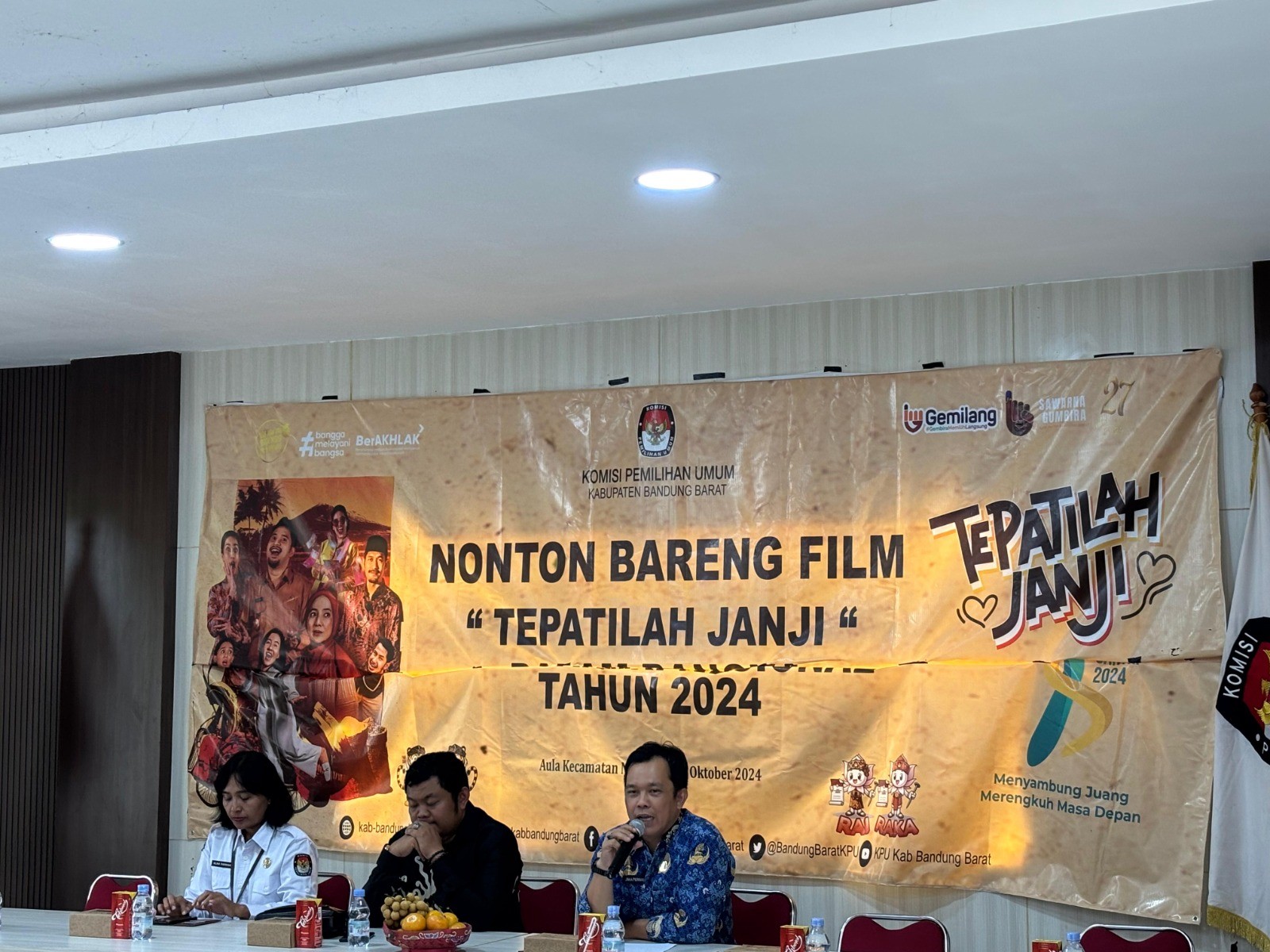 KPU BANDUNG BARAT - Senin, 28 Oktober 2024 bersamaan dengan momentum peringatan Hari Sumpah Pemuda, Komisi Pemilihan Umum (KPU) Kabupaten Bandung Barat (KBB) Bersama Panitia Pemilihan Kecamatan (PPK) Ngamprah dan Sekretariat menggelar kegiatan Nonton Bareng (Nobar) Film 'Tepatilah Janji'.