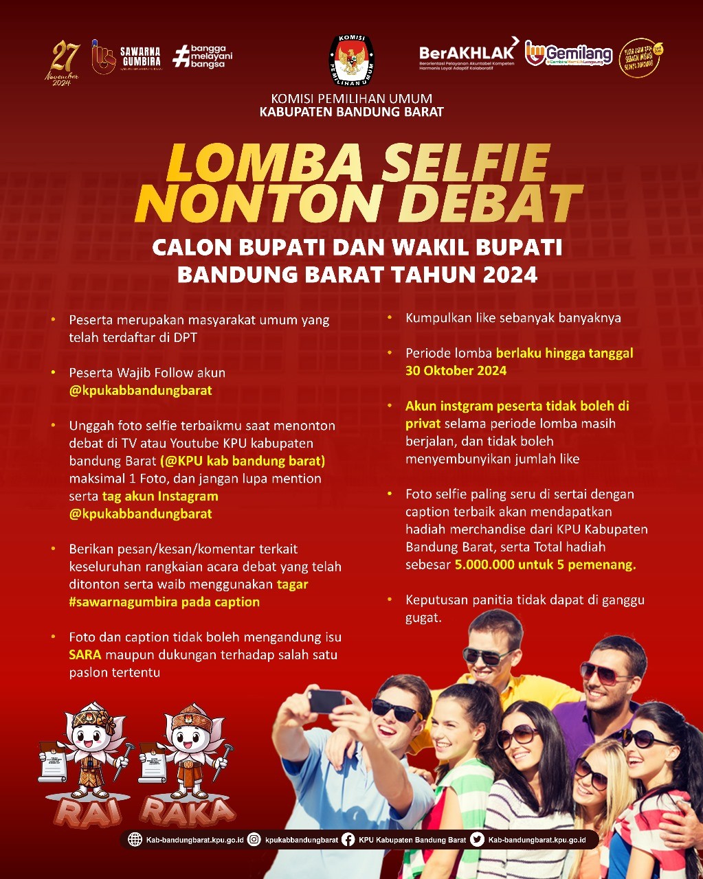 Buruan Ikuti Lomba Selfie Nonton Debat Calon Bupati dan Wakil Bupati Bandung Barat Tahun 2024, Ini Syarat Ketentuannya dan Dapatkan Hadiah Jutaan Rupiah