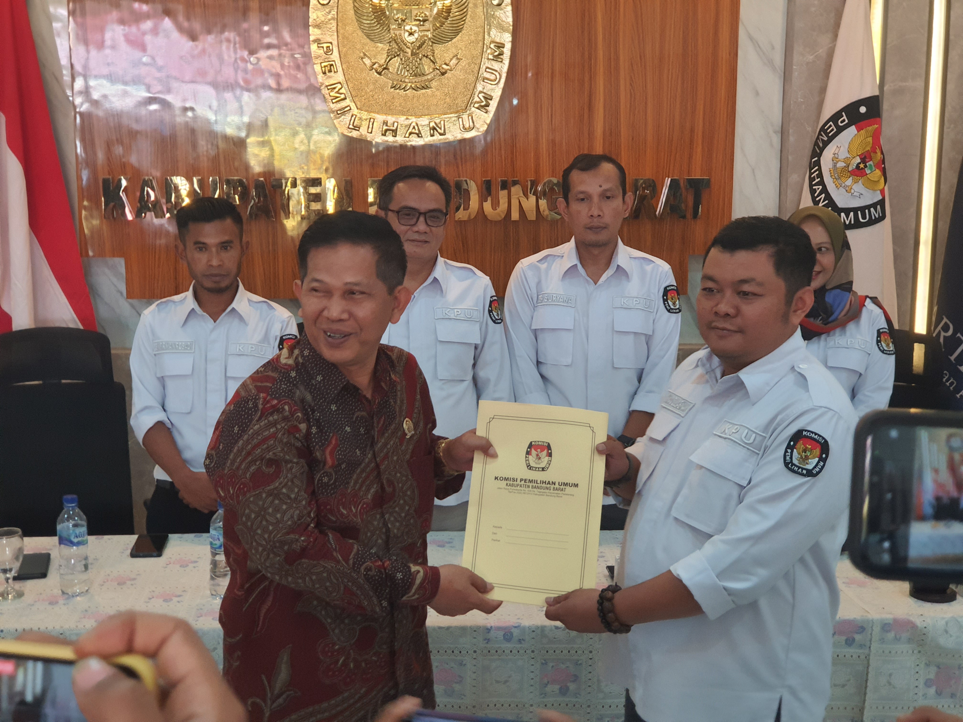 KPU BANDUNG BARAT - Komisi Pemilihan Umum (KPU) Kabupaten Bandung Barat (KBB) mengumumkan bakal pasangan calon Sundaya-Aa Maulana melenggang ke tahapan pendaftaran yang akan dilaksanakan pada 27-29 Agustus 2024.