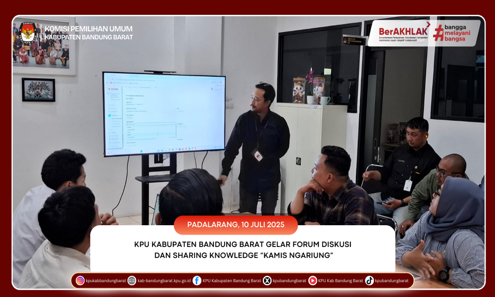 KPU BANDUNG BARAT - Dalam rangka meningkatkan pemahaman aparatur sipil negara terhadap transformasi digital di bidang kearsipan, KPU Kabupaten Bandung Barat menggelar kegiatan Sharing Knowledge bertajuk “Kamis Ngariung” dengan fokus pembahasan pada Aplikasi SRIKANDI (Sistem Informasi Kearsipan Dinamis Terintegrasi), Kamis, 10 Juli 2025 bertempat di Ruang Rapat Bayu Baskoro.