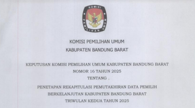 Keputusan KPU Kabupaten Bandung Barat Nomor 16 Tahun 2025 Tentang Penetapan Rekapitulasi Pemutakhiran Data Pemilih Berkelanjutan Kabupaten Bandung Barat Triwulan Kedua Tahun 2025