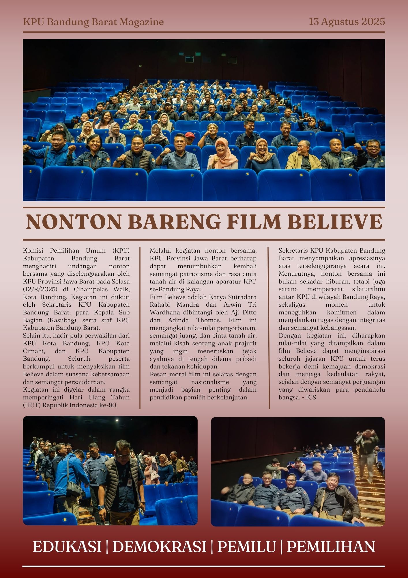 KPU Bandung Barat Hadiri Nonton Bersama Film Believe Bersama KPU Se-Bandung Raya
