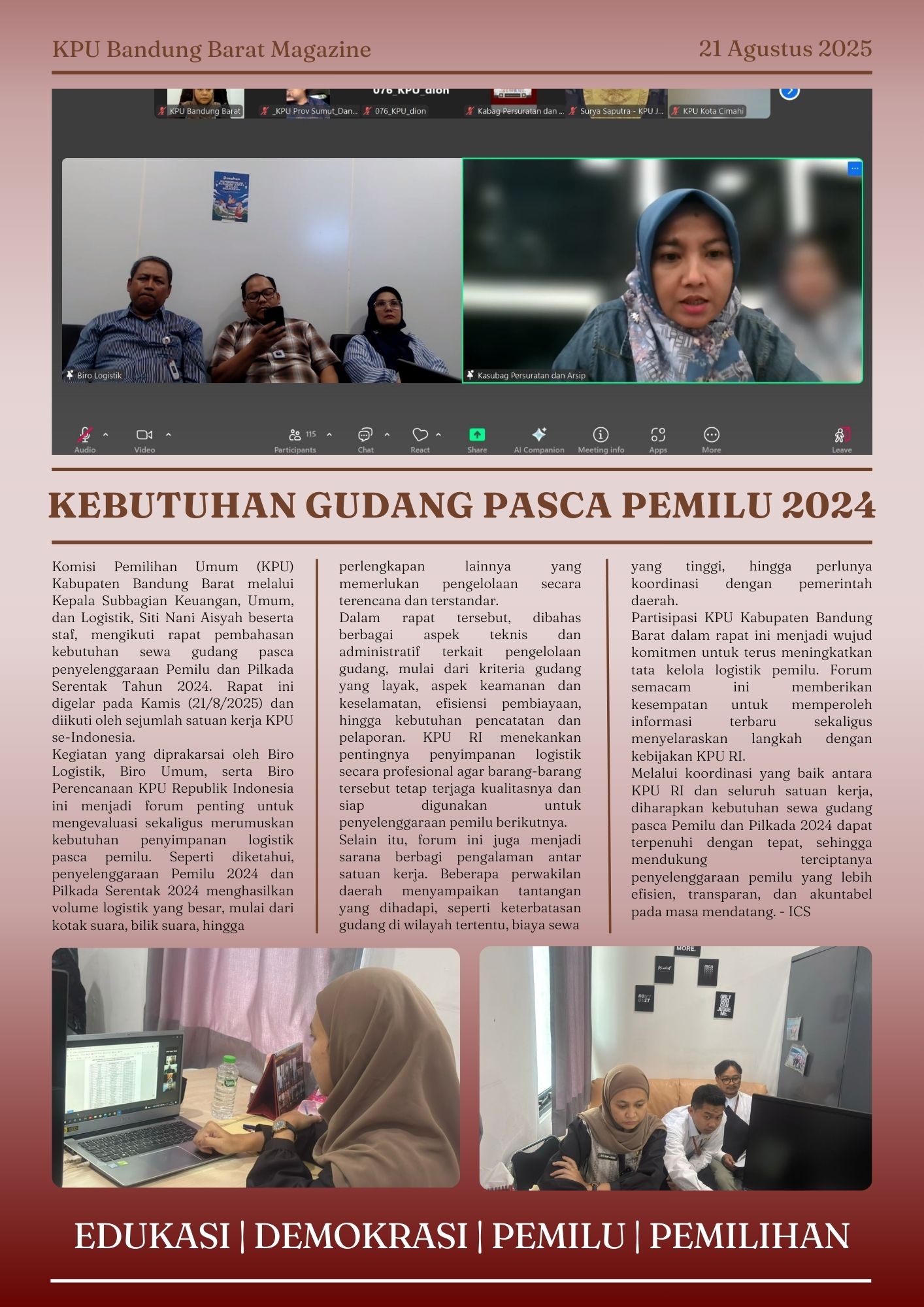 KPU Bandung Barat Ikuti Rapat Kebutuhan Sewa Gudang Pasca Pemilu dan Pilkada 2024 Secara Daring