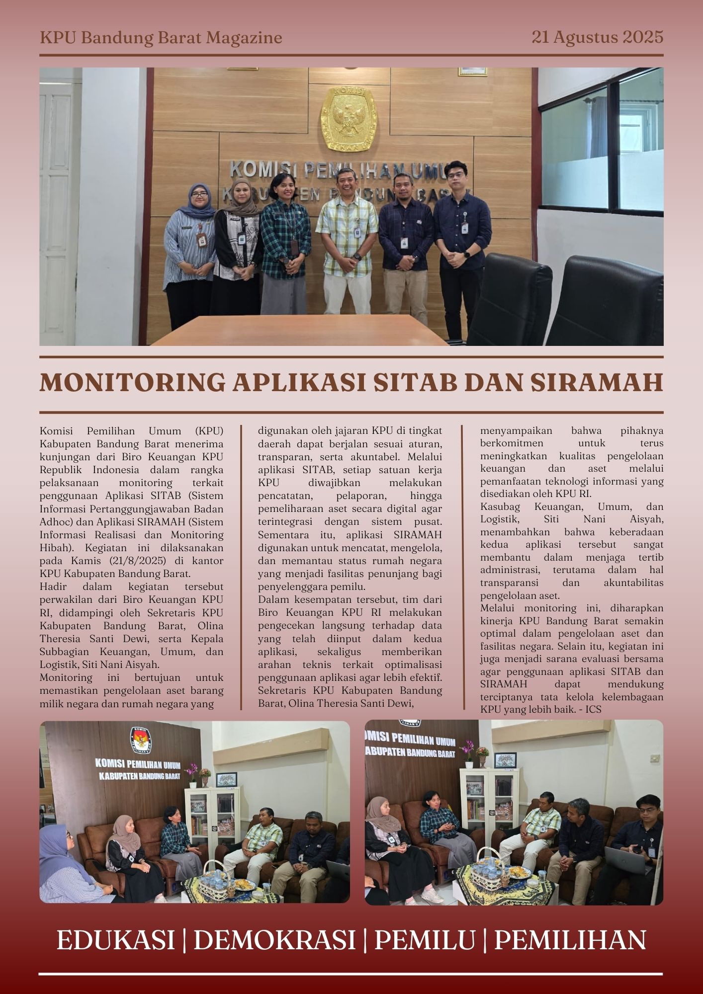KPU Bandung Barat Terima Kunjungan Biro Keuangan KPU RI Untuk Monitoring Aplikasi SITAB dan SIRAMAH