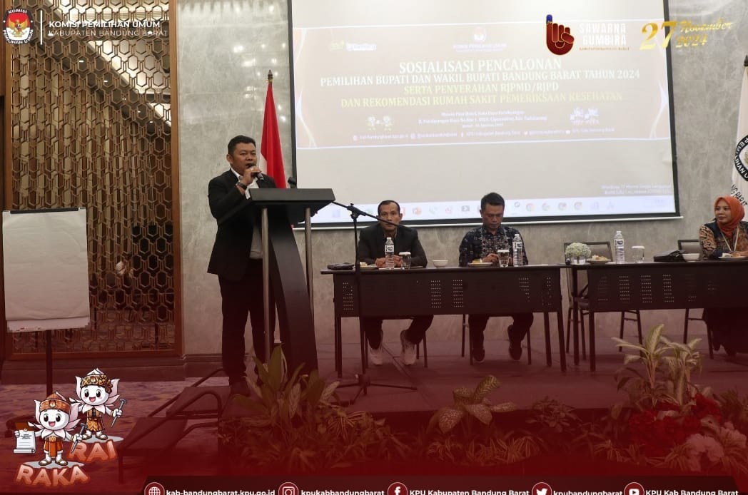 KPU juga telah melaksanakan sosialisasi Pencalonan Pemilihan Bupati fan waki bupati Bandung Barat Tahun 2024 serta penyerahan RPJMD/ RJPD dan Rekomendasi Rumah Sakit Pemeriksaan Kesehatan di Padalarang, Jumat 16 Agustus 2024.