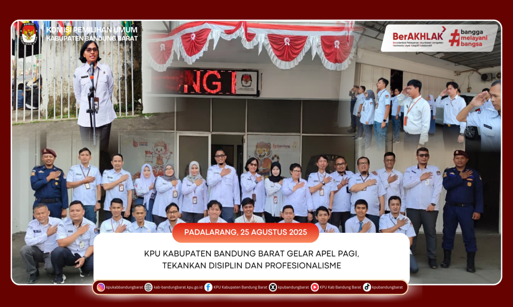 Melalui pelaksanaan apel pagi, KPU Kabupaten Bandung Barat berupaya membangun budaya kerja yang sehat, solid, dan berintegritas. Hal ini sejalan dengan visi lembaga untuk mewujudkan penyelenggaraan pemilu yang transparan, akuntabel, serta dipercaya masyarakat.(insan)
