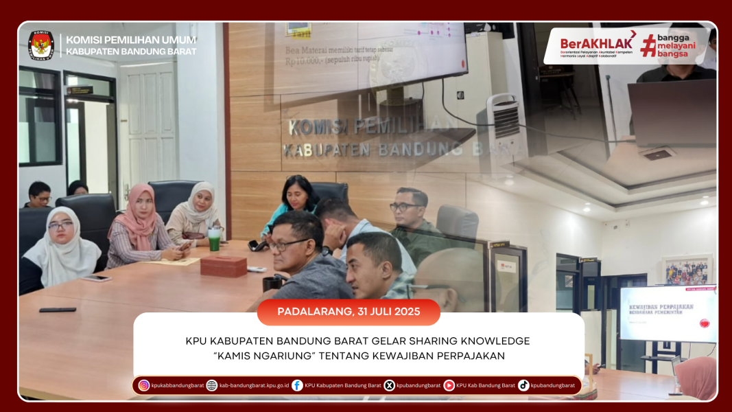 KPU BANDUNG BARAT - Komisi Pemilihan Umum (KPU) Kabupaten Bandung Barat kembali menggelar kegiatan sharing knowledge rutin "Kamis Ngariung" sebagai wadah berbagi pengetahuan di lingkungan kerja. Pada edisi kali ini, tema yang diangkat adalah seputar perpajakan, dengan fokus pada kewajiban dan hak pegawai negeri dalam sistem perpajakan Indonesia.