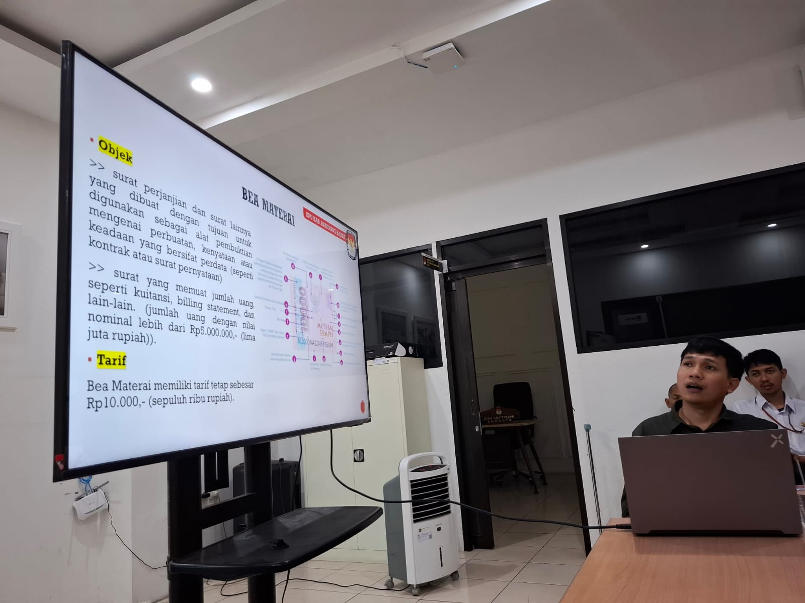 Dalam paparannya, Muhamad Rizky menjelaskan sejumlah jenis pajak yang langsung berkaitan dengan pegawai, seperti PPh Pasal 21 yang dikenakan atas penghasilan pegawai, PPh Pasal 22 dalam konteks pembelian barang oleh instansi pemerintah, serta kewajiban pelaporan dan pemotongan pajak yang sering menjadi tanggung jawab bagian keuangan. Selain pemaparan materi, kegiatan ini juga diselingi dengan sesi tanya jawab yang interaktif, di mana peserta aktif menyampaikan pertanyaan terkait perhitungan pajak, pengaruh status tanggungan terhadap besaran potongan, hingga mekanisme pelaporan SPT Tahunan.