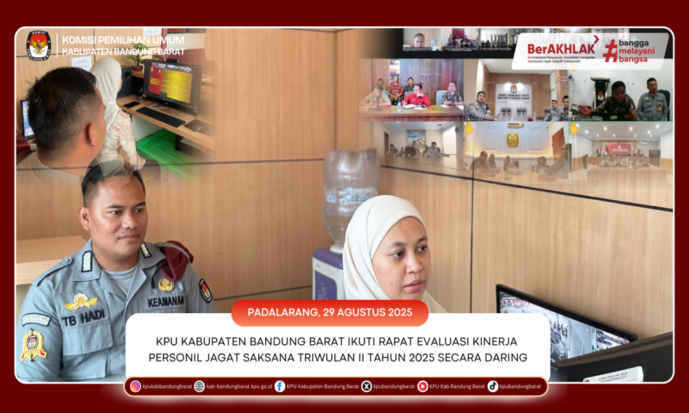 KPU BANDUNG BARAT - Komisi Pemilihan Umum (KPU) Kabupaten Bandung Barat mengikuti kegiatan Rapat Evaluasi Kinerja Personil Jagat Saksana Triwulan II Tahun 2025 yang diselenggarakan secara daring melalui Zoom Meeting, Jumat (29/8/2025).