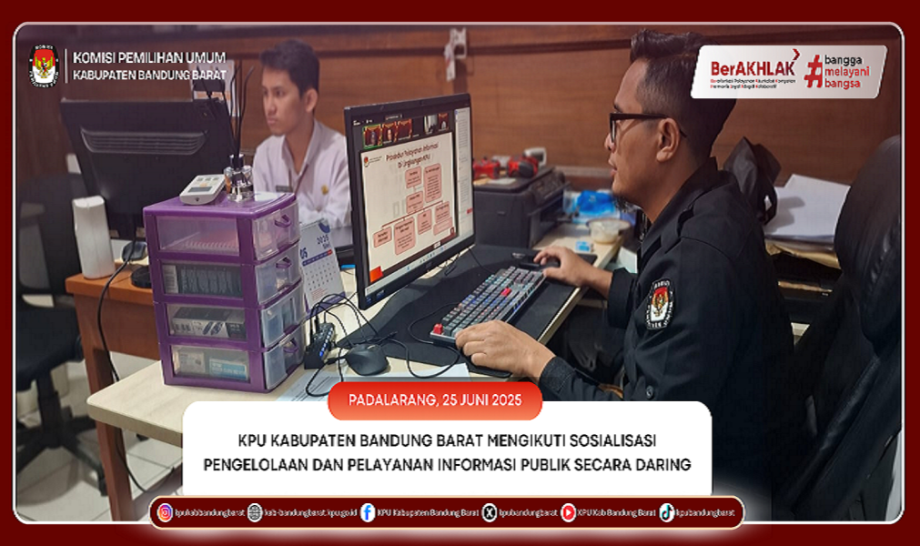KPU BANDUNG BARAT - Komisi Pemilihan Umum (KPU) Kabupaten Bandung Barat mengikuti kegiatan Sosialisasi Pengelolaan dan Pelayanan Informasi Publik yang diselenggarakan oleh Komisi Pemilihan Umum Republik Indonesia pada Rabu, 25 Juni 2025 secara daring melalui Zoom Meeting yang.