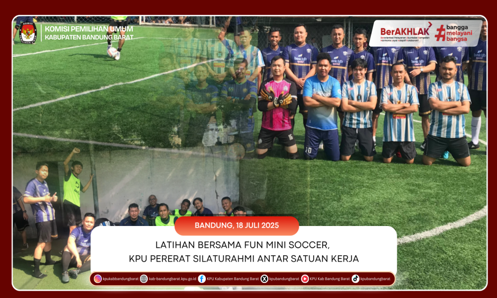 Melalui Fun Mini Soccer ini, KPU Provinsi Jawa Barat, KPU Kota Cimahi, dan KPU Kabupaten Bandung Barat menunjukkan bahwa kolaborasi antarlembaga bisa dibangun tidak hanya melalui forum formal, tetapi juga lewat kegiatan yang menyenangkan dan sehat. Semangat sinergi dan kebersamaan ini diharapkan terus terjaga untuk mendukung penyelenggaraan pemilu yang lebih baik dan berintegritas.(insan)