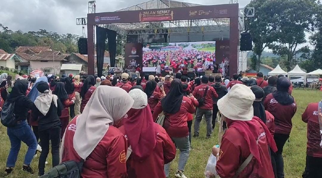 Salah satunya dengan menggelar kegiatan Jalan Sehat KPU Kabupaten Bandung Barat yang dihelat di Lapangan Desa Cibedug, Kecamatan Rongga, Minggu 24 November 2024.