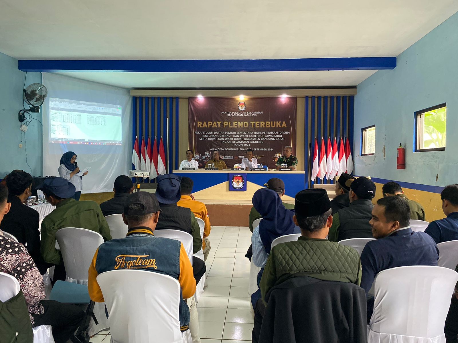 KPU BANDUNG BARAT - Bertempat di Aula Kantor Desa Bojonghaleuang, Panitia Pemilihan Kecamatan (PPK) Saguling telah menggelar Rapat Pleno Terbuka Rekapitulasi Daftar Pemilih Sementara Hasil Perbaikan (DPSHP) pada Senin 9 September 2024.
