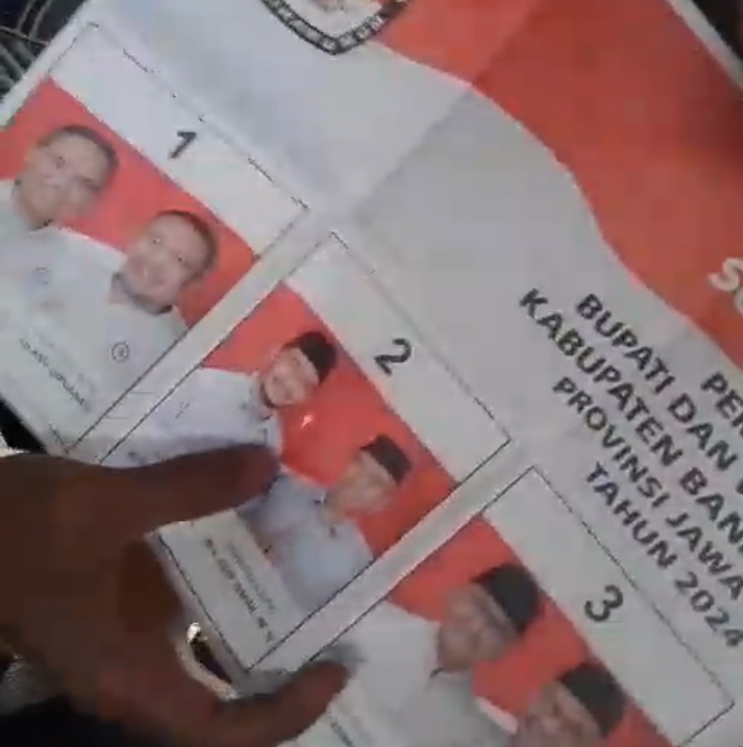 Dalam video tersebut terlihat dua petugas tempat pemungutan suara (TPS) tengah membuka lembar surat suara. Setelah dibuka, surat suara tersebut ternyata sudah tercoblos di kolom pasangan calon bupati nomor urut 2.